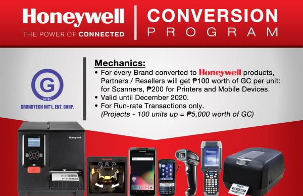 - For every Brand converted to Honeywell products, Partners/Resellers will get: Php100 worth of GC per unit (for Scanners); Php200 worth of GC per unit (for Printers and Mobile Devices).